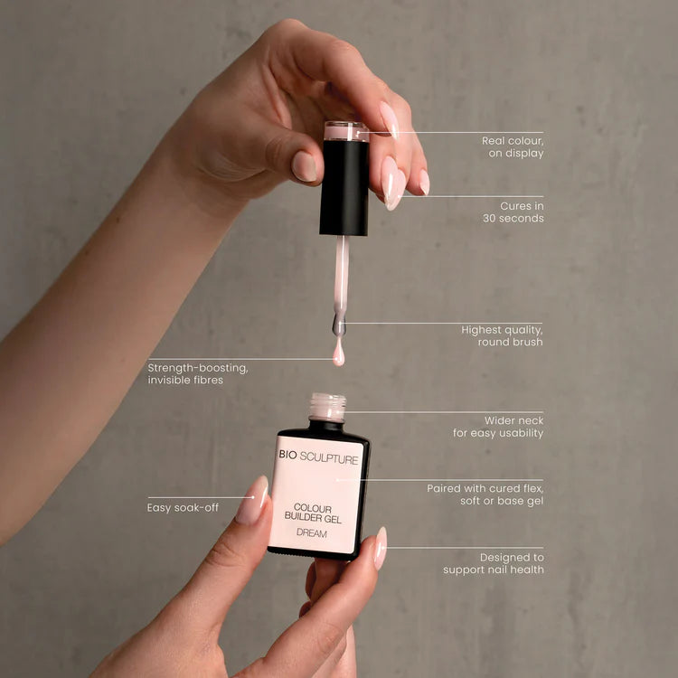 Das BIO SCULPTURE Colour Builder Gel ist für alle, die mehr wollen. Die leichte Textur verschmilzt mit dem Naturnagel, für dünne, stabile Nägel, die gleichzeitig gepflegt und gestärkt werden.Ein Gel, das nicht nur verschönert, sondern veredelt.